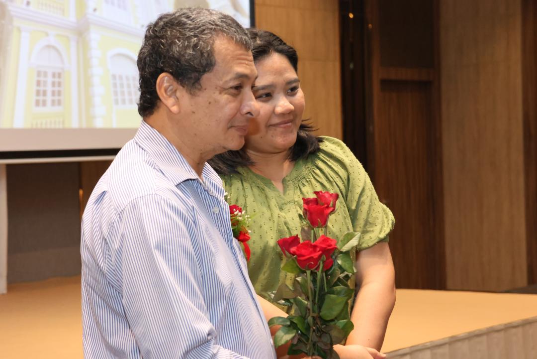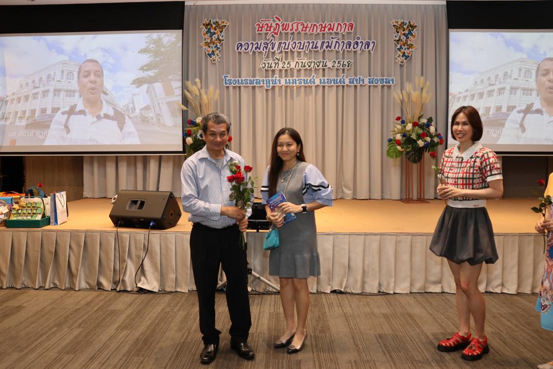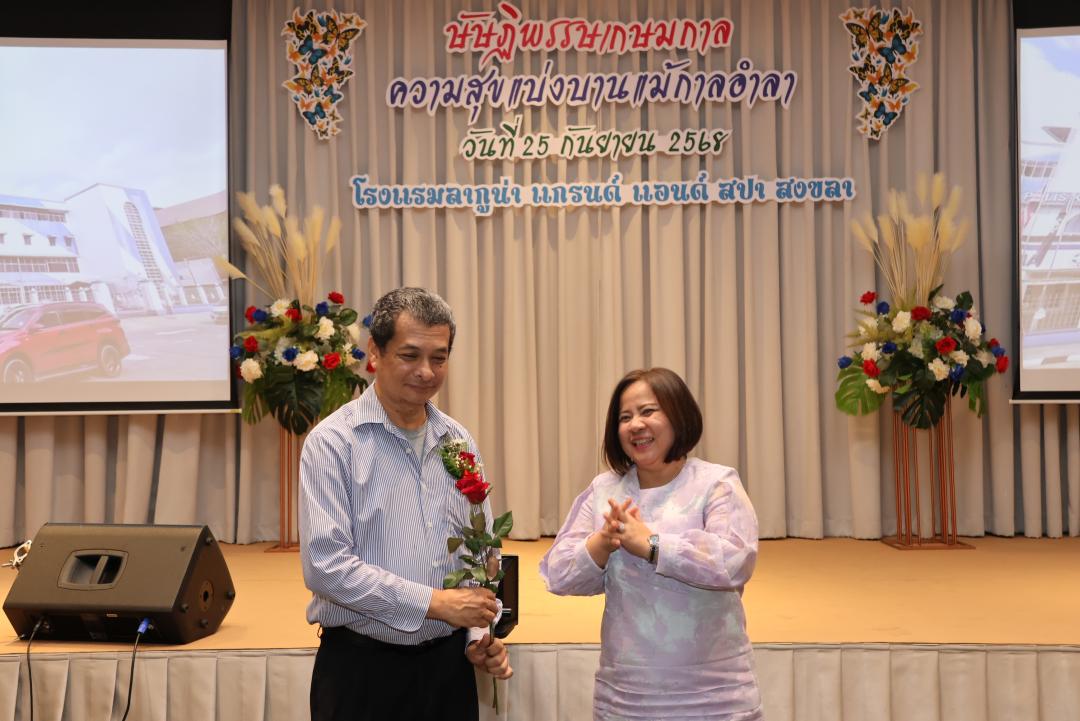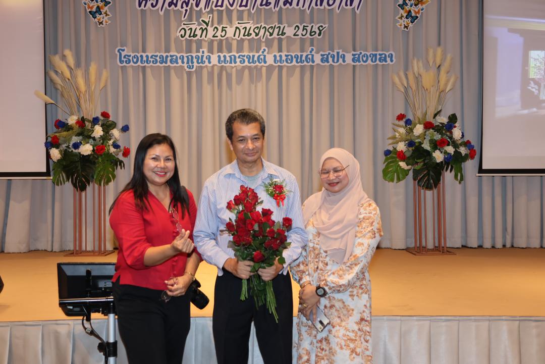 ภายในงานได้รับเกียรติจาก รองศาสตราจารย์ ดร.ณฐพงศ์ จิตรนิรัตน์ อธิการบดีมหาวิทยาลัยทักษิณ และ ผู้ช่วยศาสตราจารย์ ดร.ปาริฉัตร ตู้ดำ คณบดีคณะมนุษยศาสตร์และสังคมศาสตร์ กล่าวแสดงมุทิตาจิต พร้อมกันนี้ ผู้บริหาร คณาจารย์และบุคลากรร่วมมอบของที่ระลึกและดอกไม้ในบรรยากาศอบอุ่นและเปี่ยมด้วยความประทับใจ