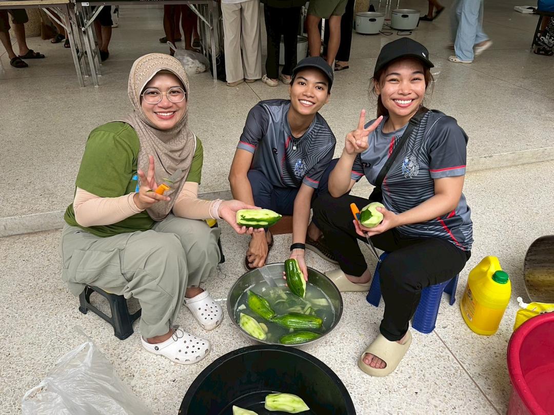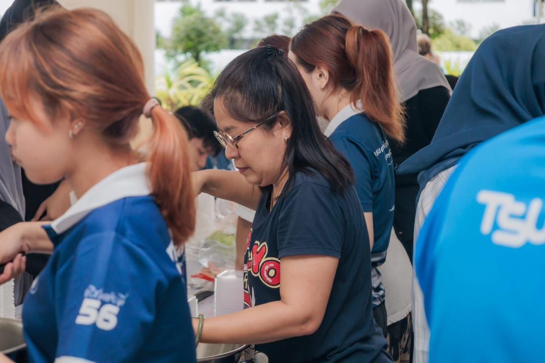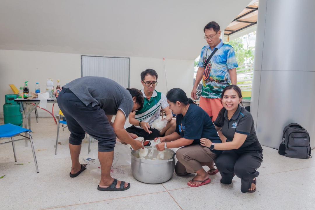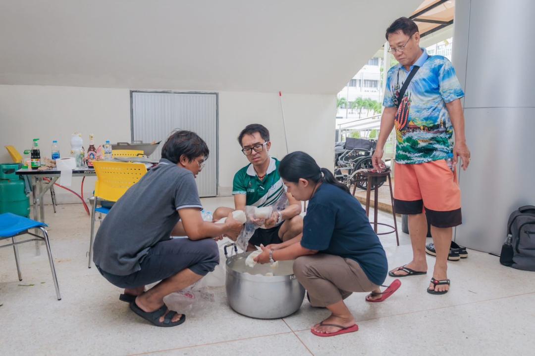 คณาจารย์ บุคลากรและนิสิตจิตอาสา ร่วมประกอบอาหารและจัดเตรียมเครื่องอุปโภคบริโภค ภายในศูนย์อำนวยการปันน้ำใจ มหาวิทยาลัยทักษิณ วิทยาเขตสงขลา
