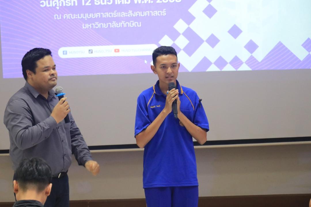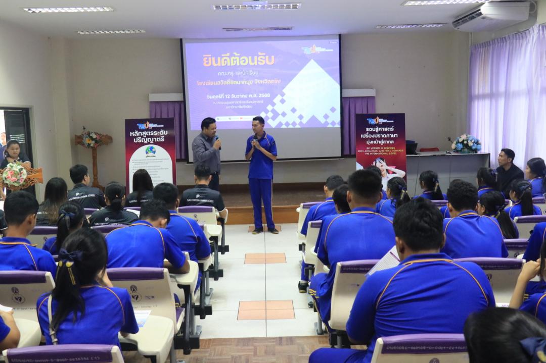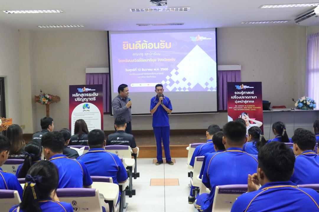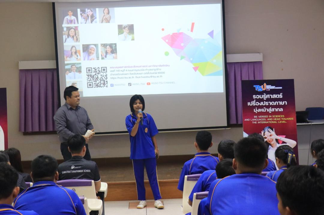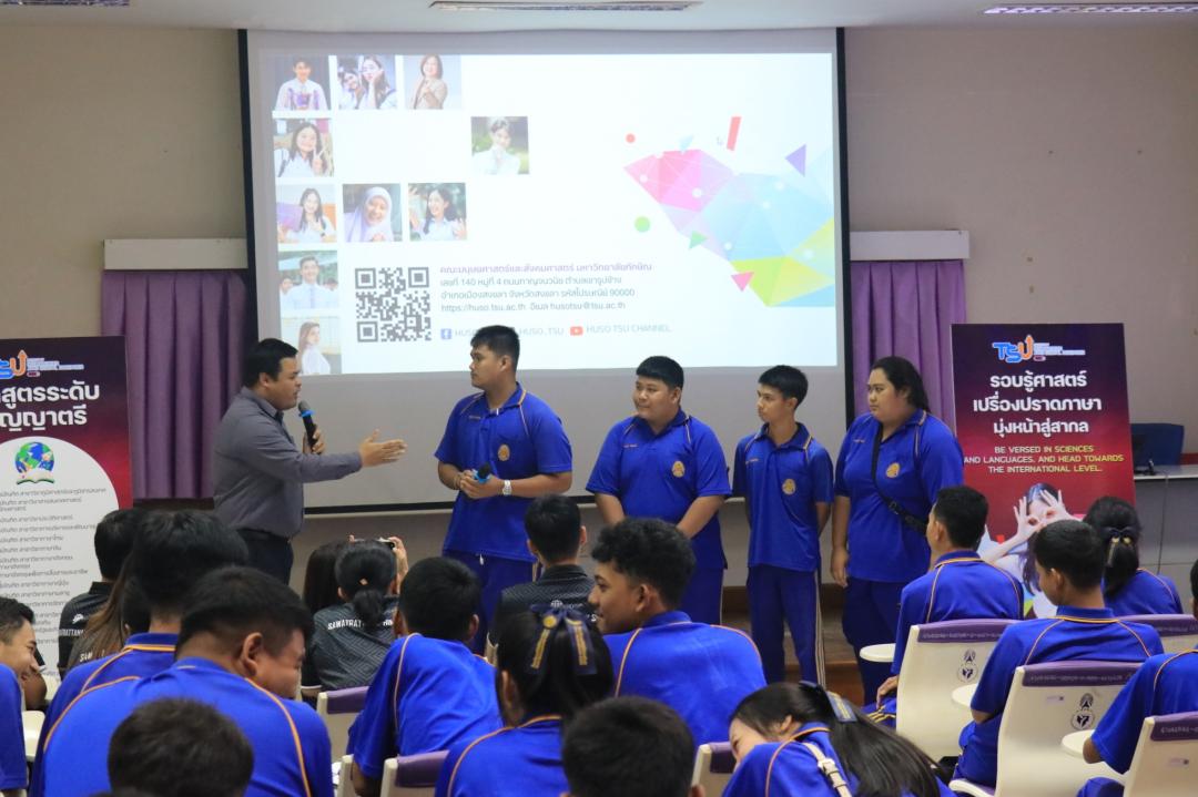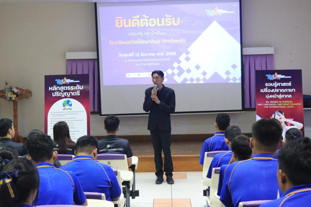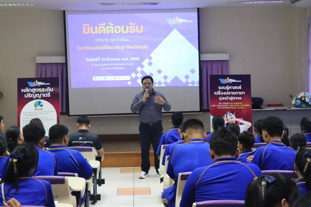 วันศุกร์ที่ 12 ธันวาคม พ.ศ. 2568 ณ ห้องประชุมสัมมนา 5 (13315) คณะมนุษยศาสตร์และสังคมศาสตร์ มหาวิทยาลัยทักษิณ เปิดบ้านต้อนรับคณะครู และน้อง ๆ นักเรียนระดับชั้นมัธยมศึกษาปีที่ 4-5 แผนการเรียนภาษาไทย-สังคมศึกษา จำนวน 70 คน ในโอกาสเดินทางมาเข้ารับการแนะแนวหลักสูตรการเรียนการสอนด้านมนุษยศาสตร์และสังคมศาสตร์ เพื่อเป็นการเตรียมความพร้อมในการเข้าศึกษาต่อระดับอุดมศึกษา ในปีการศึกษา 2570 และ 2571 รวมทั้งเพื่อเปิดโลกทัศน์และมีความพร้อมสู่ความเป็นเลิศทางวิชาการ สามารถบูรณาการความรู้เชิงสร้างสรรค์ได้อย่างมีคุณภาพและประสิทธิภาพ