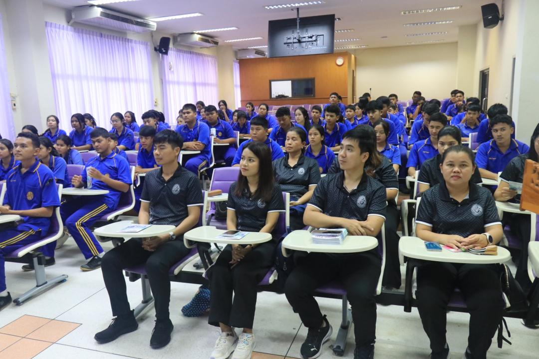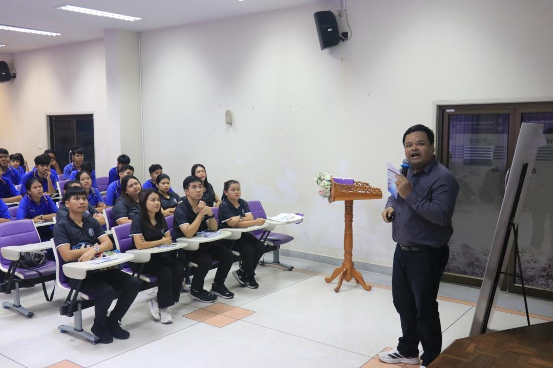 โอกาสนี้ ผู้ช่วยศาสตราจารย์ ดร.ปาริฉัตร ตู้ดำ คณบดีคณะมนุษยศาสตร์และสังคมศาสตร์ ได้มอบหมายให้ ผู้ช่วยศาสตราจารย์ ดร.เสริมศักดิ์ ขุนพล ผู้ช่วยคณบดีฝ่ายบริการวิชาการและสื่อสารองค์กร ให้เกียรติกล่าวต้อนรับ พร้อมแนะนำข้อมูลเกี่ยวกับคณะและหลักสูตรต่าง ๆ ที่เปิดสอนในระดับปริญญาตรีของคณะมนุษยศาสตร์และสังคมศาสตร์