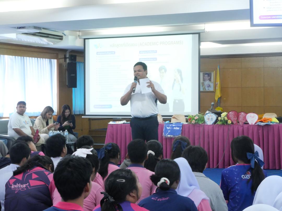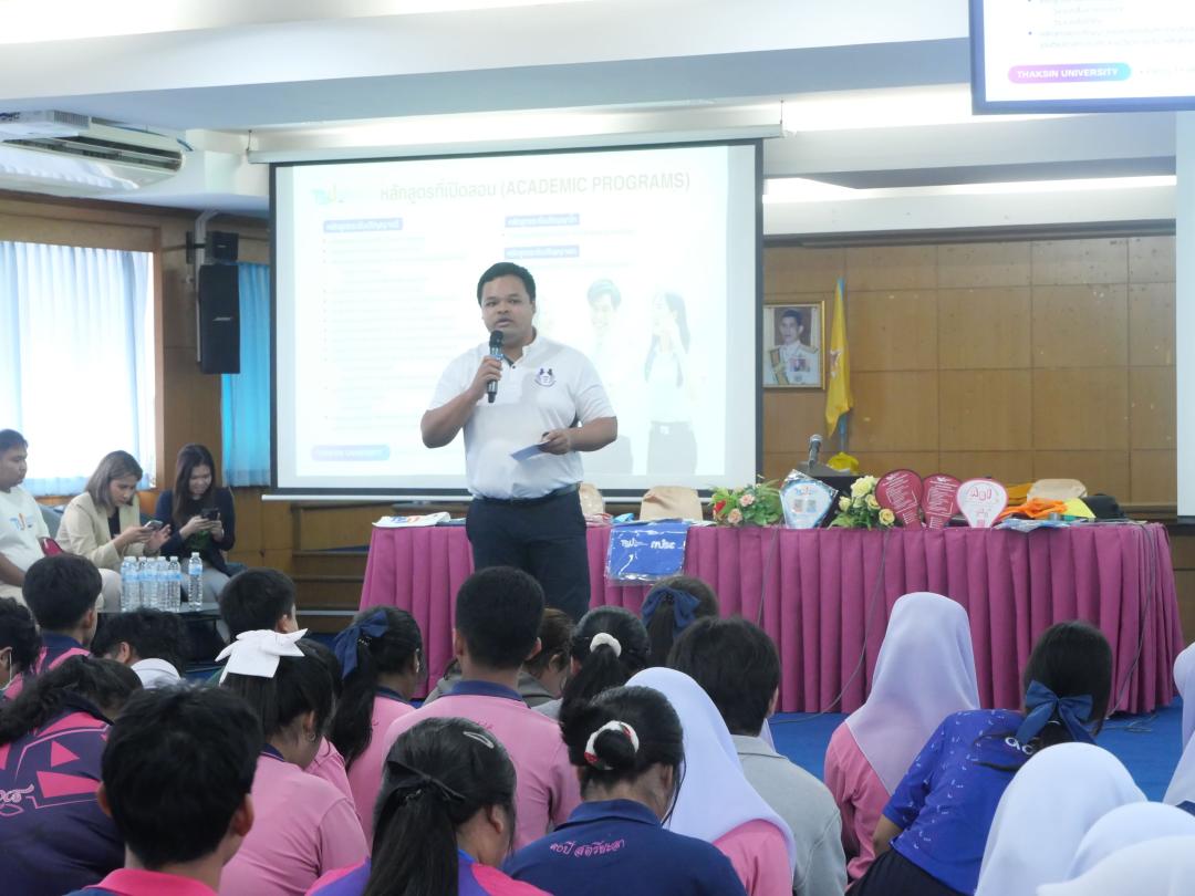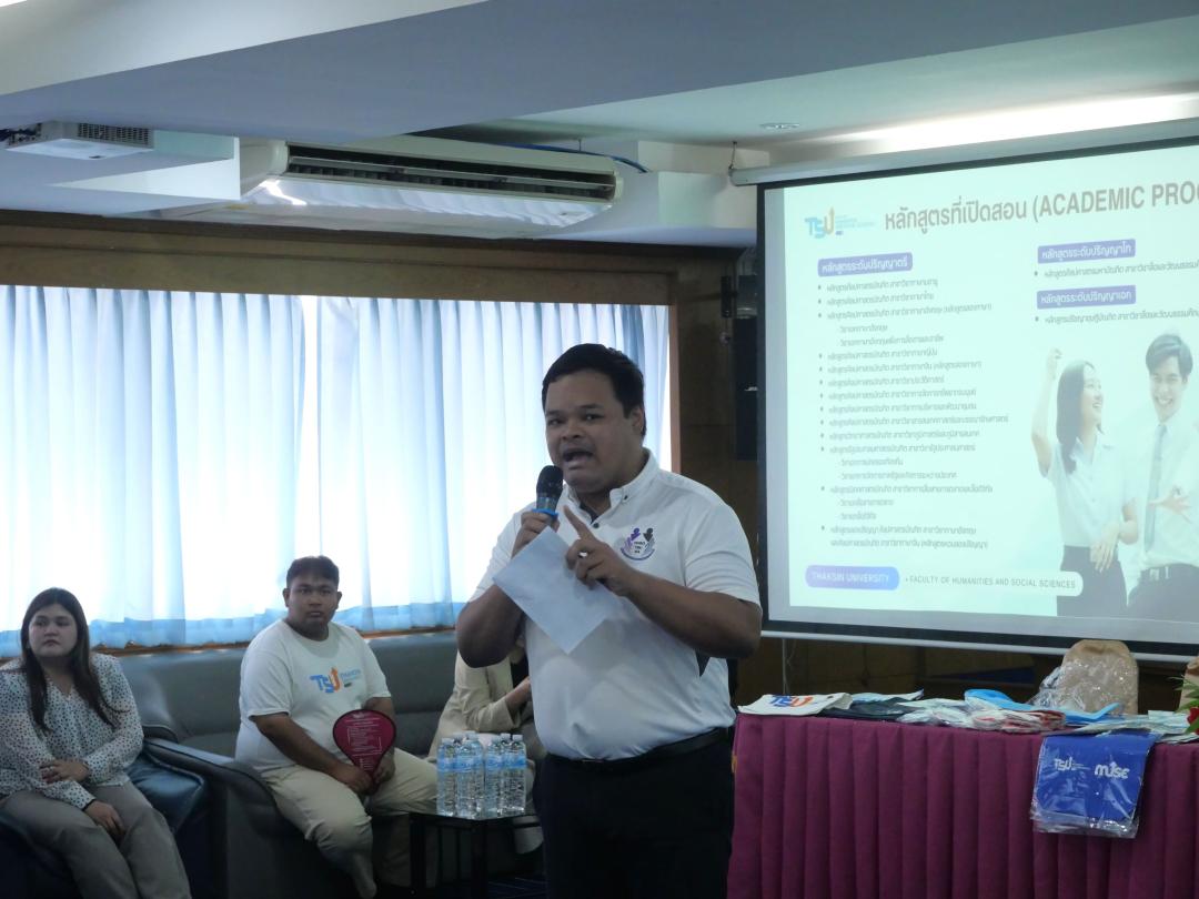 วันพุธที่ 17 ธันวาคม พ.ศ. 2568 งานสื่อสารองค์กร คณะมนุษยศาสตร์และสังคมศาสตร์ มหาวิทยาลัยทักษิณ เดินทางไปยัง 3 โรงเรียนมัธยมศึกษาในพื้นที่จังหวัดยะลา ประกอบด้วย โรงเรียนพัฒนาวิทยา โรงเรียนสตรียะลา และโรงเรียนธรรมวิทยามูลนิธิ ในกิจกรรม "HUSO ON TOUR แนะแนวการศึกษาต่อ TCAS’69" เพื่อเป็นการแนะนำหลักสูตรการเรียนการสอนระดับปริญญาตรี และข้อมูลการรับสมัครนิสิตใหม่ทั้ง 3 รอบของคณะมนุษยศาสตร์และสังคมศาสตร์