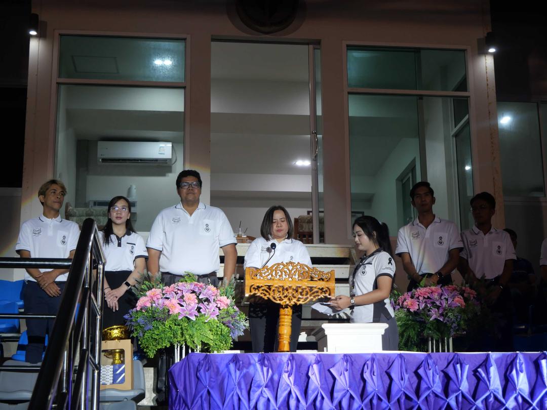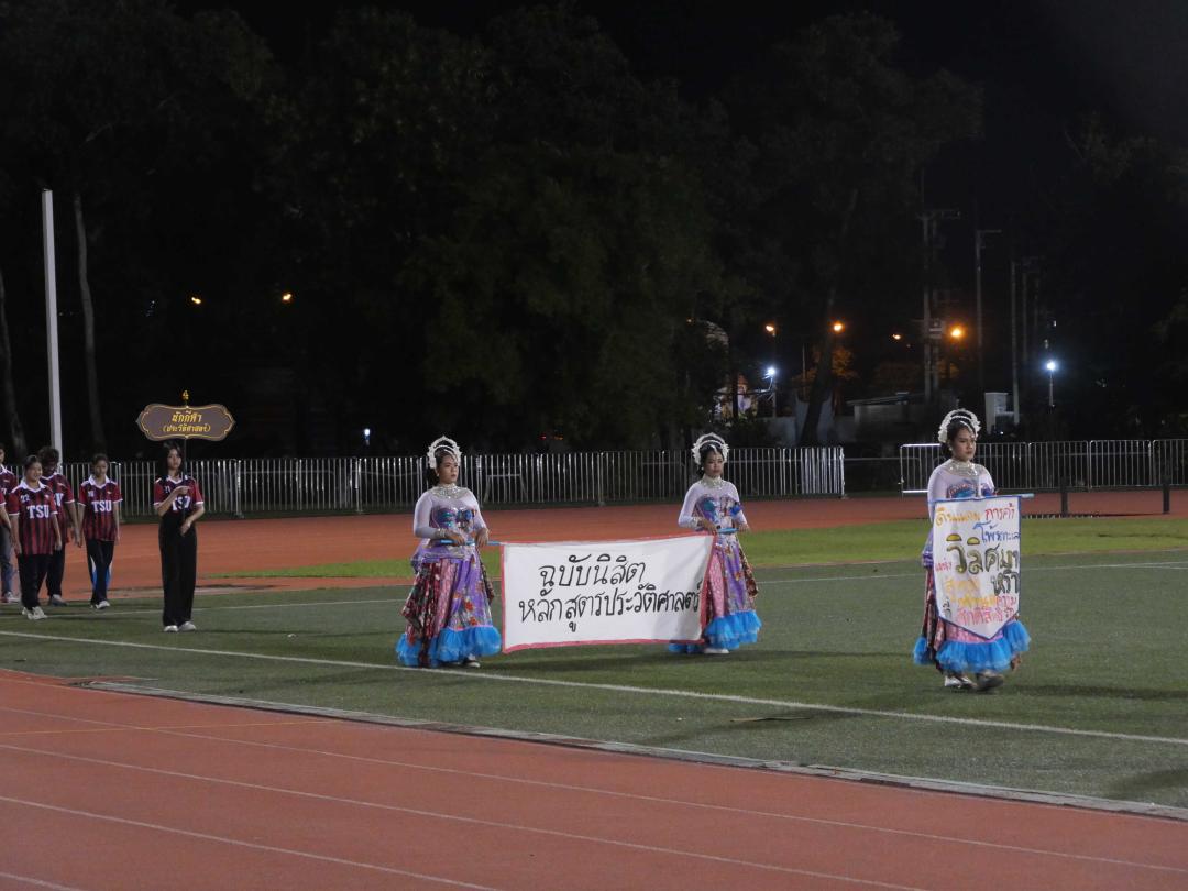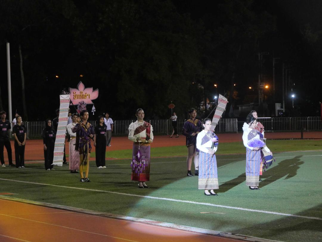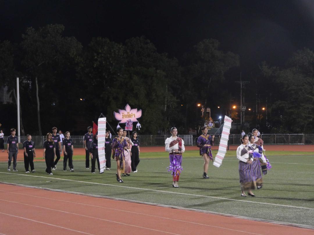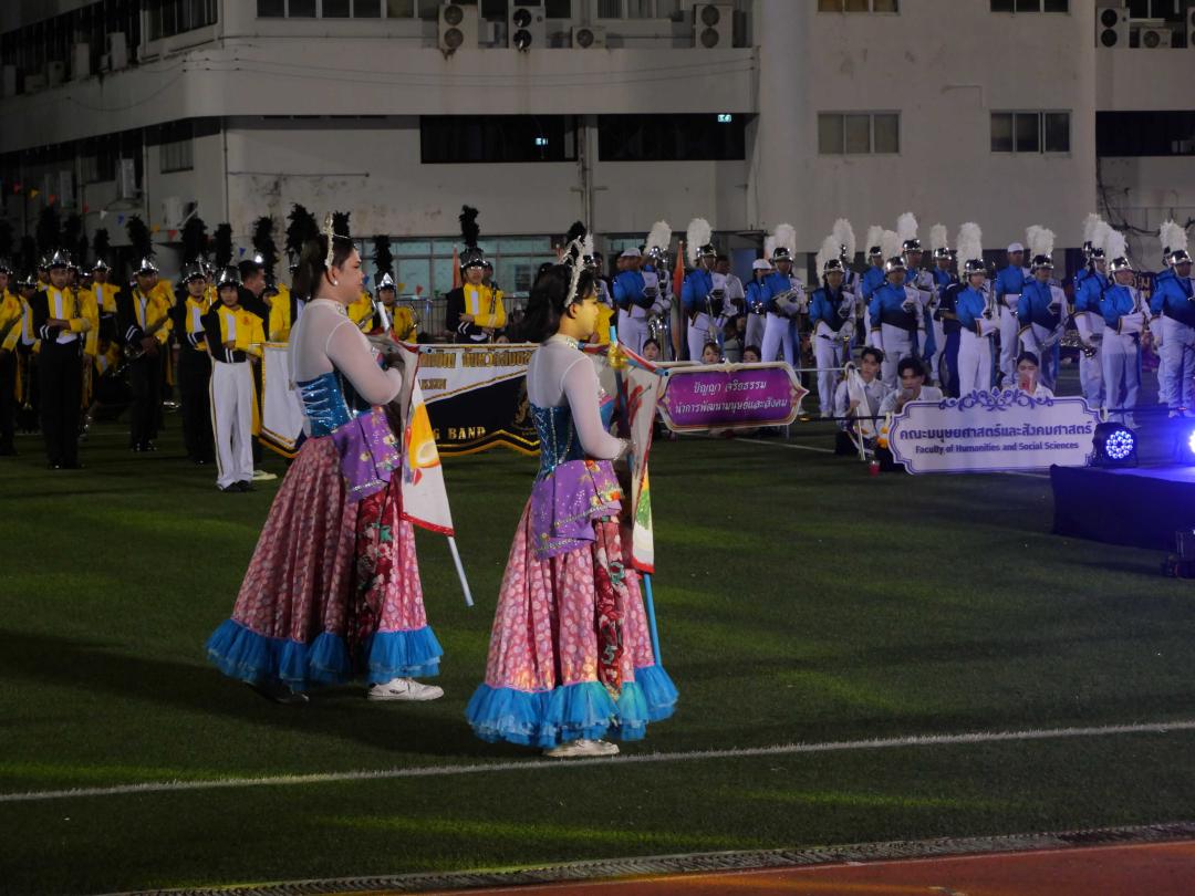 โอกาสนี้ ผู้ช่วยศาสตราจา่รย์ ดร.ปาริฉัตร ตู้ดำ คณบดีคณะมนุษยศาสตร์และสังคมศาสตร์ ให้เกียรติเป็นประธานในพิธี โดยมี ผู้ช่วยศาสตราจารย์ ดร.ก้องกิดากร บุญช่วย ผู้ช่วยคณบดีฝ่ายพัฒนานิสิตและศิษย์เก่าสัมพันธ์ พร้อมด้วยอาจารย์ที่ปรึกษสโมสรนิสิตฯ และอาจารย์คณะกรรมการพัฒนานิสิตและวินัยนิสิต ร่วมเป็นเกียรติในพิธี พร้อมรับชมและให้กำลังใจกับขบวนพาเหรดของนิสิตทั้ง 13 หลักสูตรและนักกีฬาที่เข้าร่วมการแข่งขันครั้งนี้