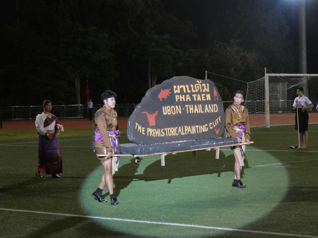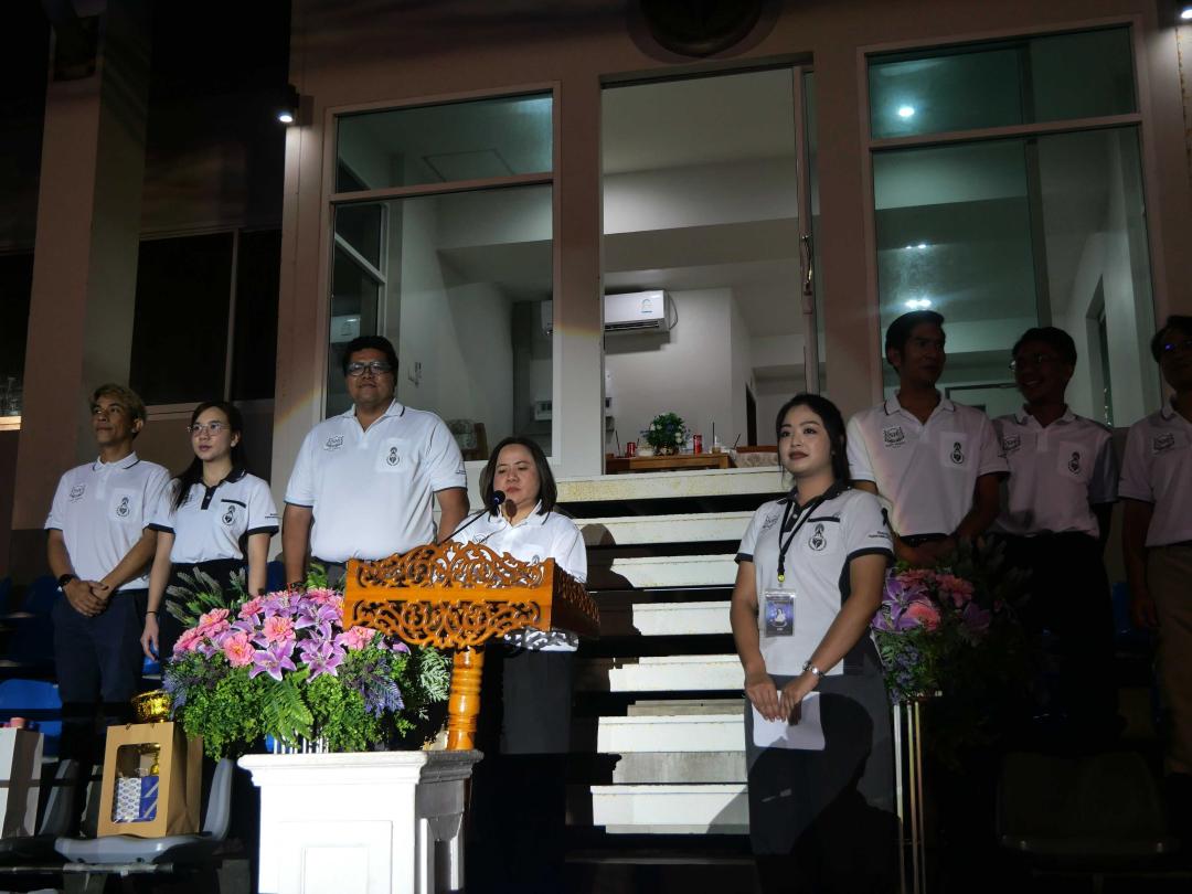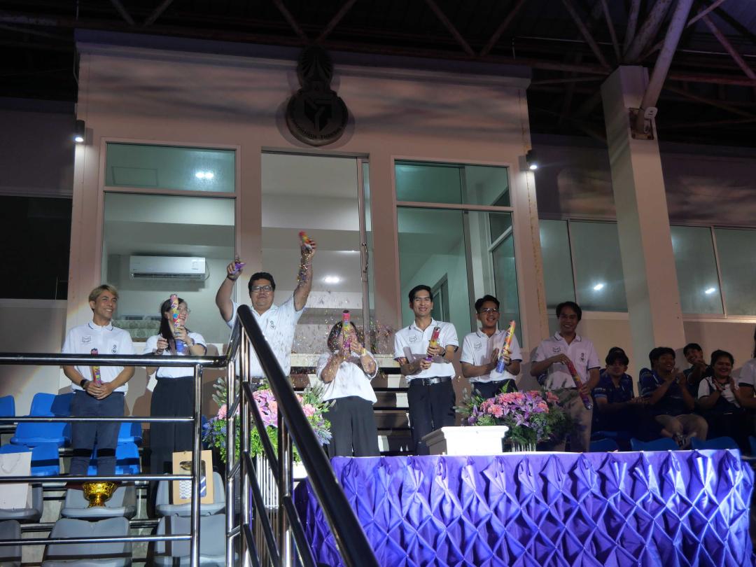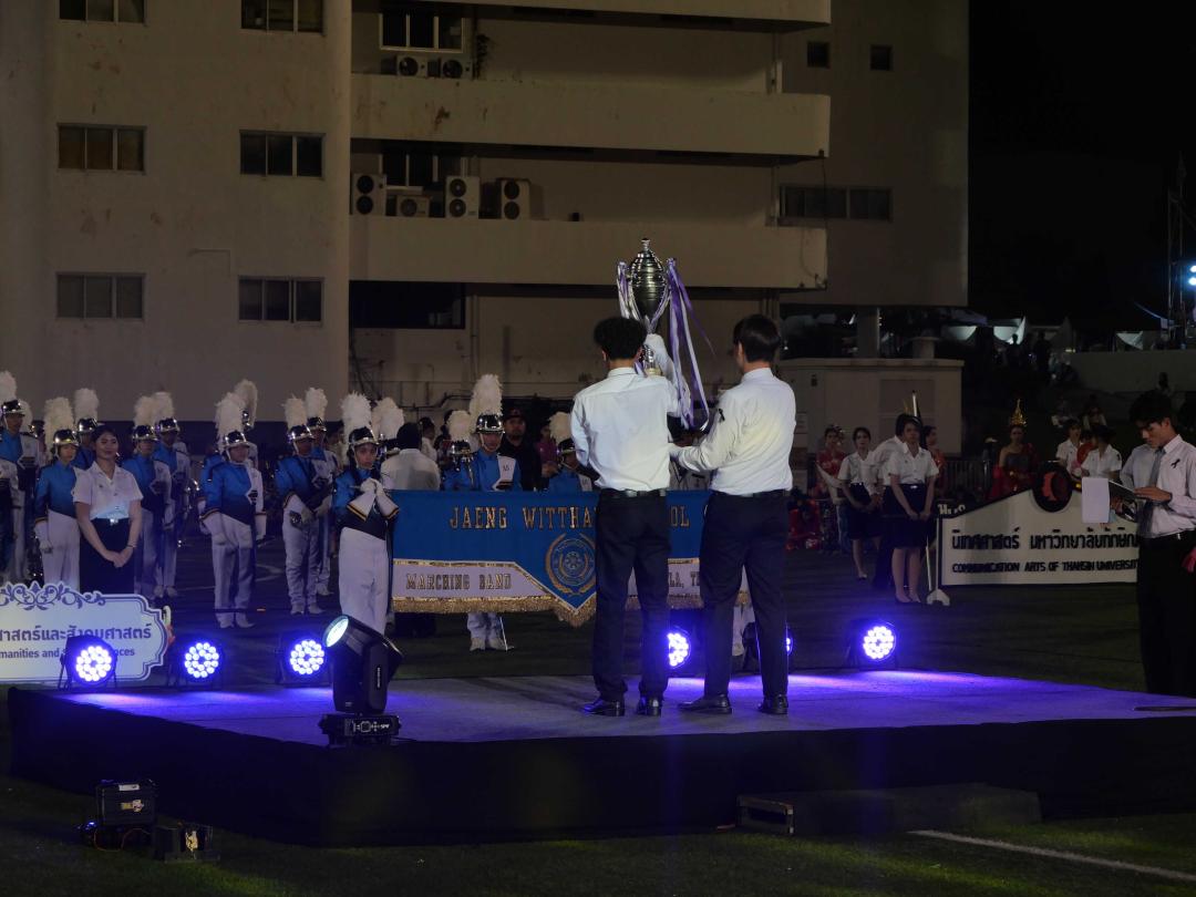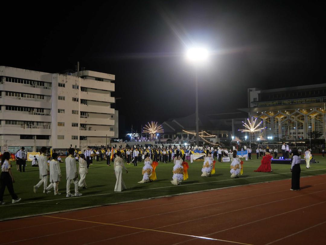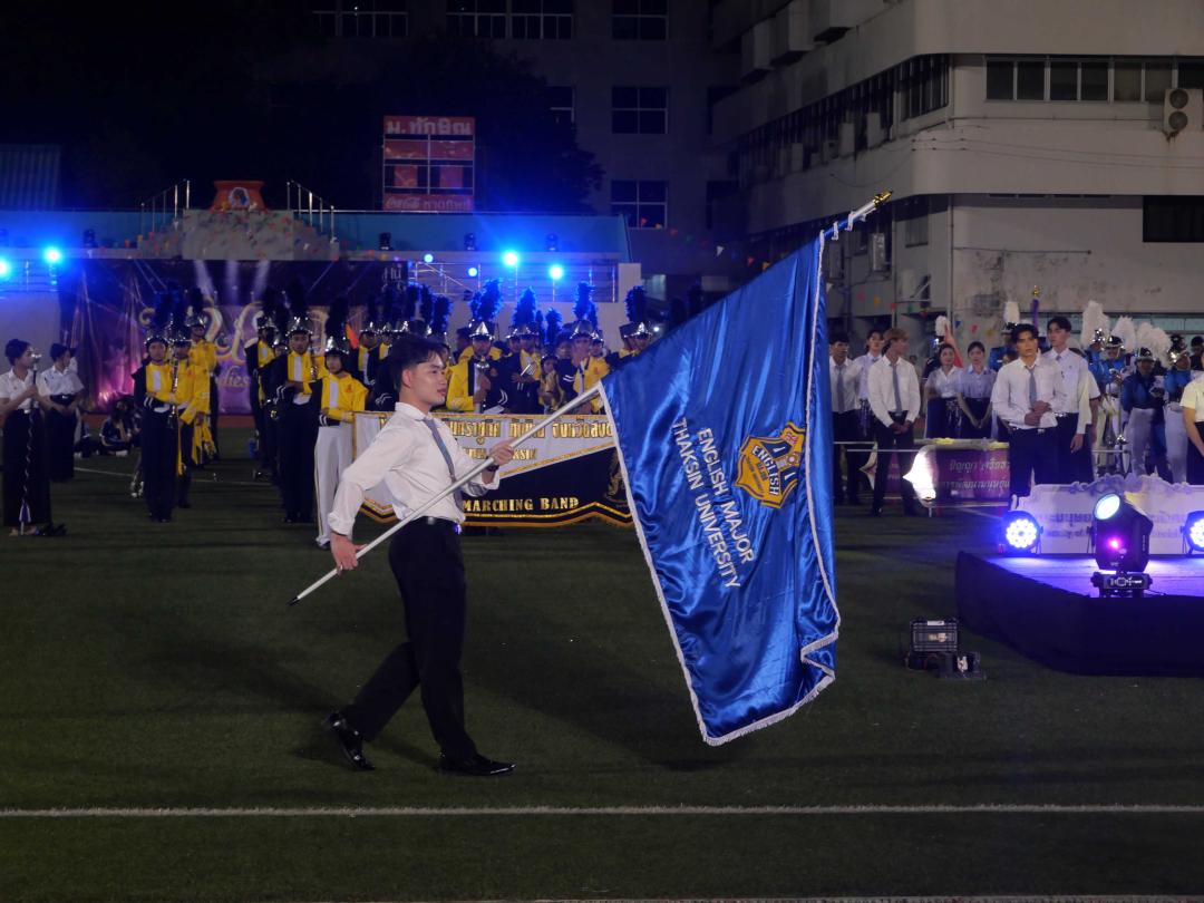 โอกาสนี้ ผู้ช่วยศาสตราจา่รย์ ดร.ปาริฉัตร ตู้ดำ คณบดีคณะมนุษยศาสตร์และสังคมศาสตร์ ให้เกียรติเป็นประธานในพิธี โดยมี ผู้ช่วยศาสตราจารย์ ดร.ก้องกิดากร บุญช่วย ผู้ช่วยคณบดีฝ่ายพัฒนานิสิตและศิษย์เก่าสัมพันธ์ พร้อมด้วยอาจารย์ที่ปรึกษสโมสรนิสิตฯ และอาจารย์คณะกรรมการพัฒนานิสิตและวินัยนิสิต ร่วมเป็นเกียรติในพิธี พร้อมรับชมและให้กำลังใจกับขบวนพาเหรดของนิสิตทั้ง 13 หลักสูตรและนักกีฬาที่เข้าร่วมการแข่งขันครั้งนี้