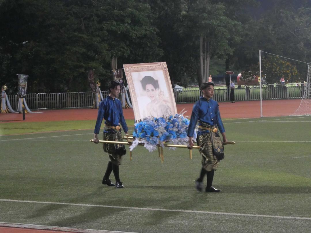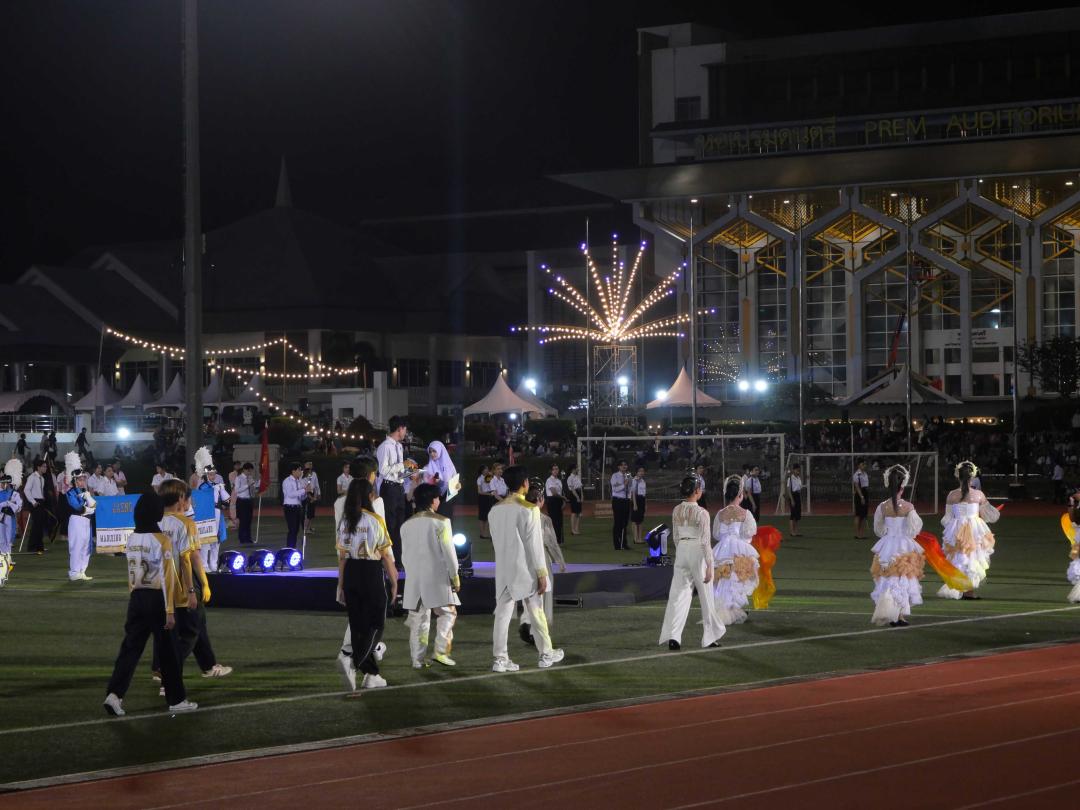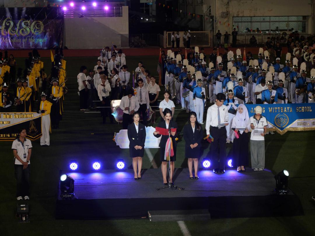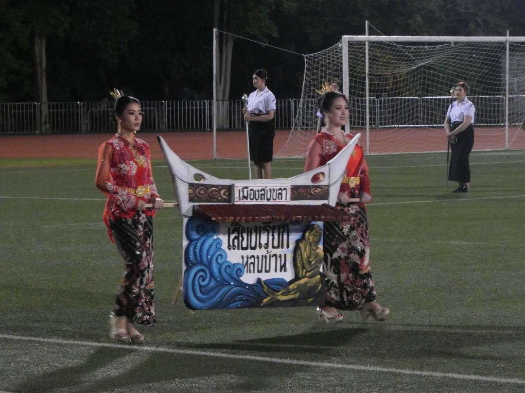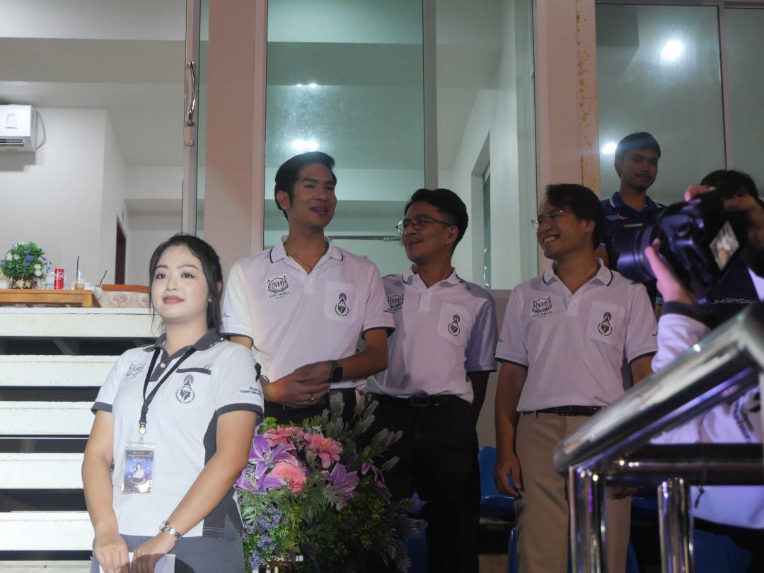 โอกาสนี้ ผู้ช่วยศาสตราจา่รย์ ดร.ปาริฉัตร ตู้ดำ คณบดีคณะมนุษยศาสตร์และสังคมศาสตร์ ให้เกียรติเป็นประธานในพิธี โดยมี ผู้ช่วยศาสตราจารย์ ดร.ก้องกิดากร บุญช่วย ผู้ช่วยคณบดีฝ่ายพัฒนานิสิตและศิษย์เก่าสัมพันธ์ พร้อมด้วยอาจารย์ที่ปรึกษสโมสรนิสิตฯ และอาจารย์คณะกรรมการพัฒนานิสิตและวินัยนิสิต ร่วมเป็นเกียรติในพิธี พร้อมรับชมและให้กำลังใจกับขบวนพาเหรดของนิสิตทั้ง 13 หลักสูตรและนักกีฬาที่เข้าร่วมการแข่งขันครั้งนี้