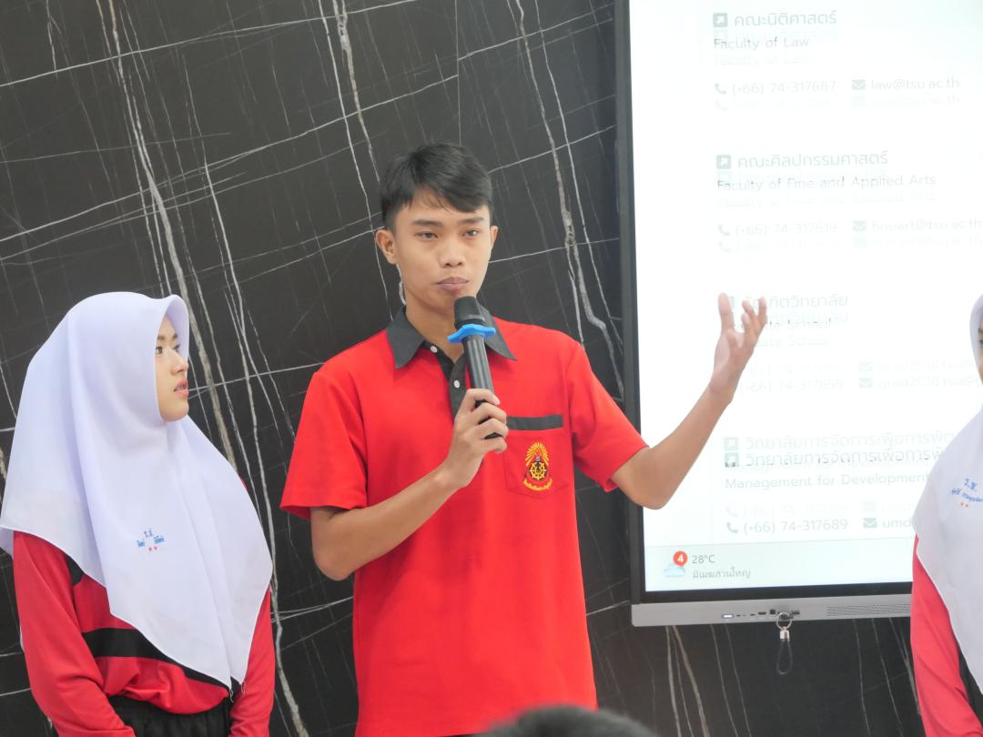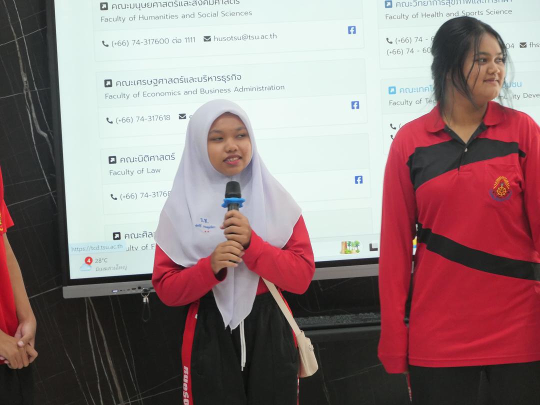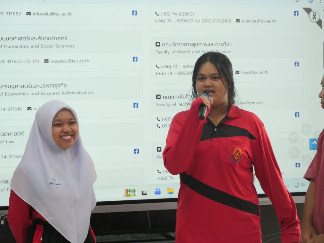กิจกรรมครั้งนี้ งานสื่อสารองค์กรคณะมนุษยศาสตร์และสังคมศาสตร์ ได้ให้ข้อมูลเจาะลึกเกี่ยวกับหลักสูตรการเรียนการสอนระดับปริญญาตรีทั้ง 13 หลักสูตร เทคนิคการทำ Portfolio สิ่งสนับสนุนการเรียนรู้ รวมถึงแนวทางการประกอบอาชีพในอนาคตของแต่ละสาขาวิชา เพื่อเตรียมความพร้อมและสร้างแรงบันดาลใจให้แก่นักเรียนในการวางแผนการศึกษาต่อในรั้วมหาวิทยาลัยทักษิณต่อไป