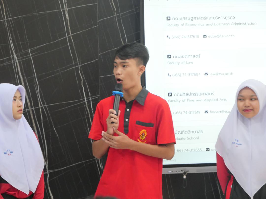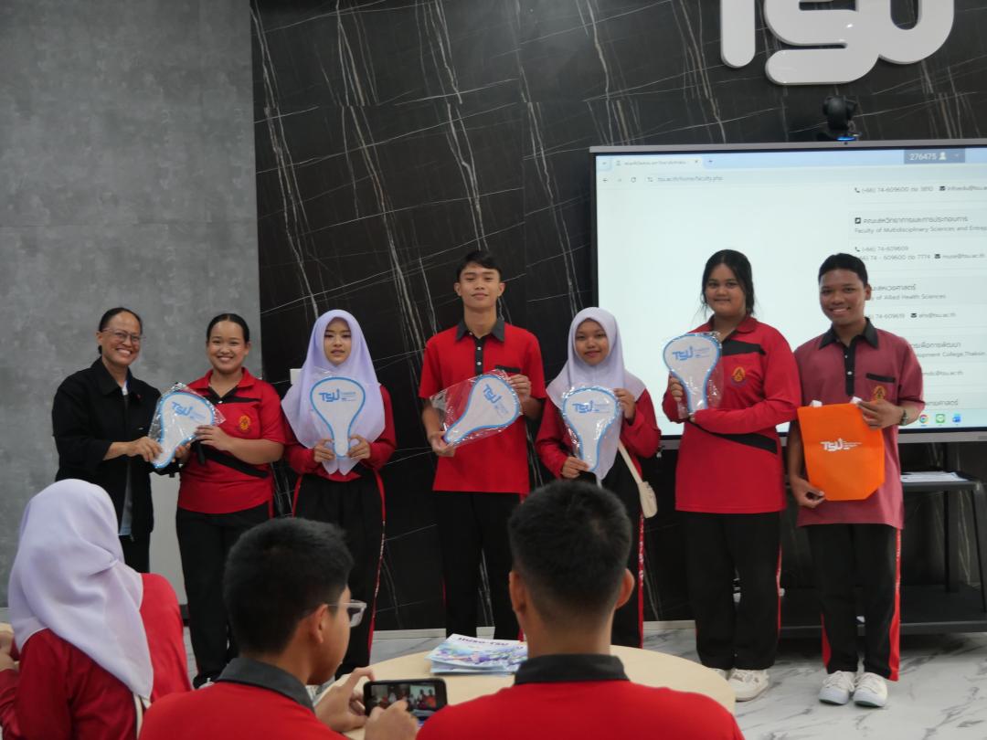 วันศุกร์ที่ 9 มกราคม พ.ศ. 2569 ณ ห้อง Co-working ชั้น 1 อาคาร 50 ปี มหาวิทยาลัยทักษิณ งานสื่อสารองค์กร คณะมนุษยศาสตร์และสังคมศาสตร์ ร่วมให้การต้อนรับคณะครูและนักเรียนระดับชั้นมัธยมศึกษาปีที่ 5 จากโรงเรียนรือเสาะชนูปถัมภ์ อำเภอรือเสาะ จังหวัดนราธิวาส ในโอกาสเข้าเยี่ยมชมและรับการแนะแนวศึกษาต่อระดับอุดมศึกษา ณ มหาวิทยาลัยทักษิณ วิทยาเขตสงขลา