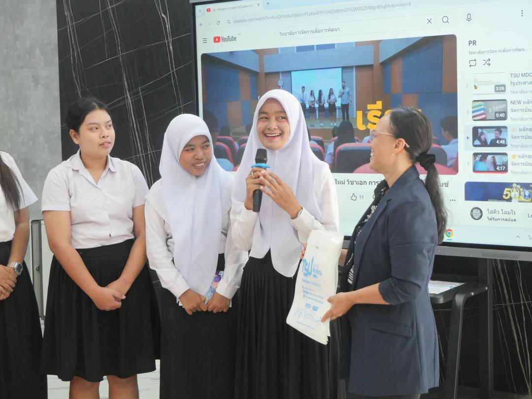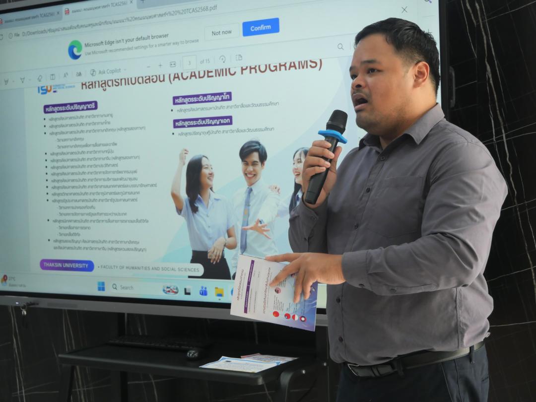 วันพฤหัสบดีที่ 15 มกราคม พ.ศ. 2569 ณ ห้อง Co-Working Space ชั้น 1 อาคาร 50 ปี มหาวิทยาลัยทักษิณ วิทยาเขตสงขลา งานสื่อสารองค์กร คณะมนุษยศาสตร์และสังคมศาสตร์ เข้าร่วมต้อนรับคณะครูและนักศึกษาจากศูนย์ส่งเสริมการเรียนรู้ระดับอำเภอสุไหงโก-ลก ตำบลสุไหงโก-ลก อำเภอสุไหงโก-ลก จังหวัดนราธิวาส ในโอกาสเดินทางมาเยี่ยมชมและรับการแนะแนวการศึกษาต่อ ในโครงการพัฒนาศักยภาพนักศึกษาด้านการแนะแนวและการศึกษาต่อ โดยในโอกาสนี้ งานสื่อสารองค์กรฯ ได้ร่วมแนะแนวหลักสูตรการเรียนการสอนระดับปริญญาตรีของคณะ บรรยากาศการใช้ชีวิตในรั้วมหาวิทยาลัย สิ่งอำนวยความสะดวก ตลอดจนกิจกรรมการเรียนรู้ของนิสิตตลอดการศึกษา เพื่อให้นักศึกษาที่สนใจสามารถวางแผนการเข้าศึกษาต่อในอนาคตได้อย่างมีประสิทธิภาพ