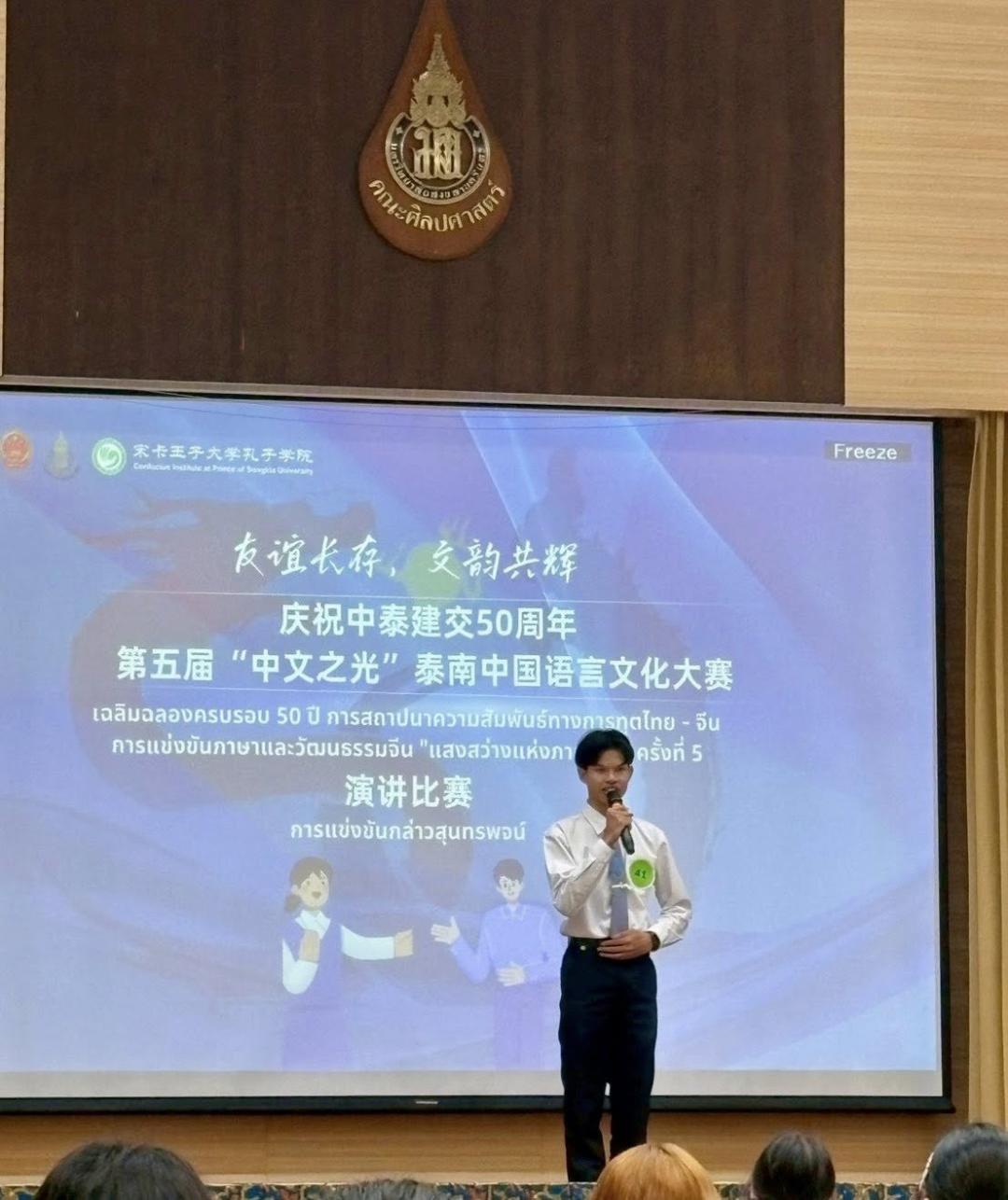 คณะมนุษยศาสตร์และสังคมศาสตร์ มหาวิทยาลัยทักษิณ ขอแสดงความยินดีกับนิสิตหลักสูตรศิลปศาสตรบัณฑิต สาขาวิชาภาษาจีน ในโอกาสที่ได้รับรางวัลจากการเข้าร่วมการแข่งขัน "แสงสว่างแห่งภาษาจีน”ครั้งที่ 5 จัดขึ้นโดย สถาบันขงจื๊อ มหาวิทยาลัยสงขลานครินทร์ เมื่อวันที่ 17 มกราคม พ.ศ. 2569