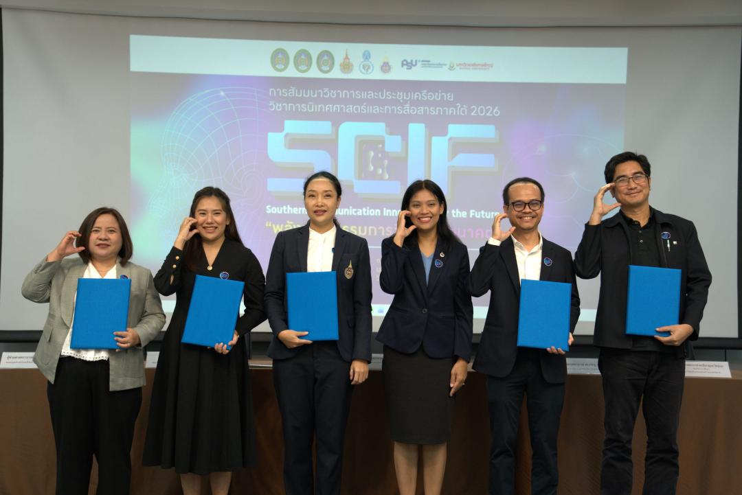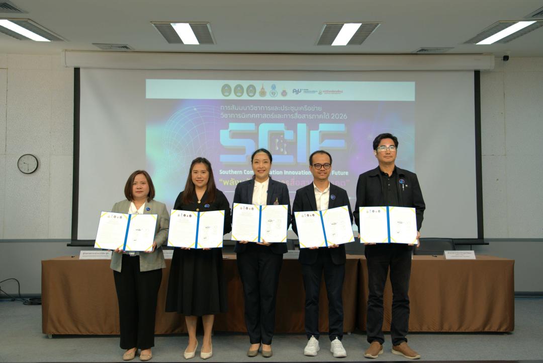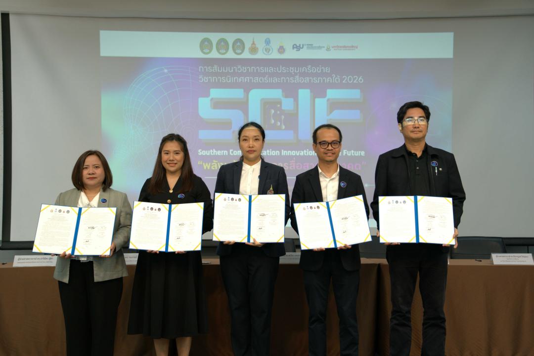 คณบดีคณะมนุษยศาสตร์และสังคมศาสตร์ มหาวิทยาลัยทักษิณ ร่วมลงนามความร่วมมือทางวิชาการ ในงานสัมมนาวิชาการและประชุมเครือข่ายวิชาการนิเทศศาสตร์และการสื่อสารภาคใต้ 2026 : พลังนวัตกรรมการสื่อสารสู่อนาคต Southern Communication Innovation for the Future (SCIF) ณ คณะวิทยาการสื่อสาร มหาวิทยาลัยสงขลานครินทร์ วิทยาเขตปัตตานี