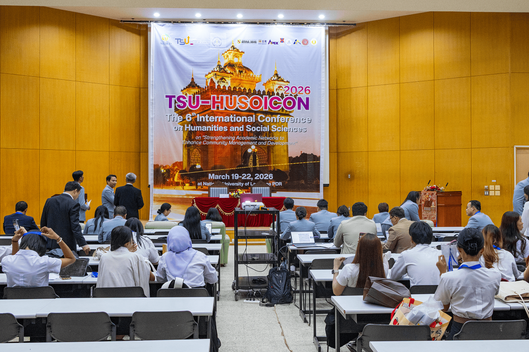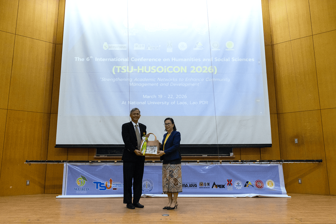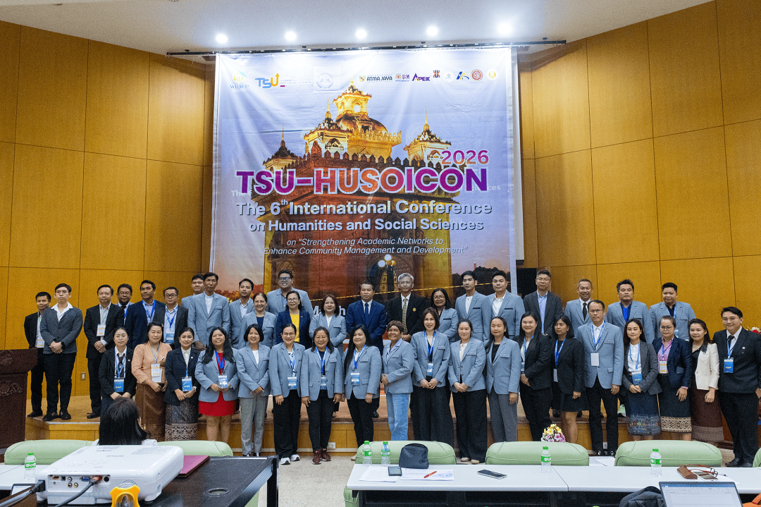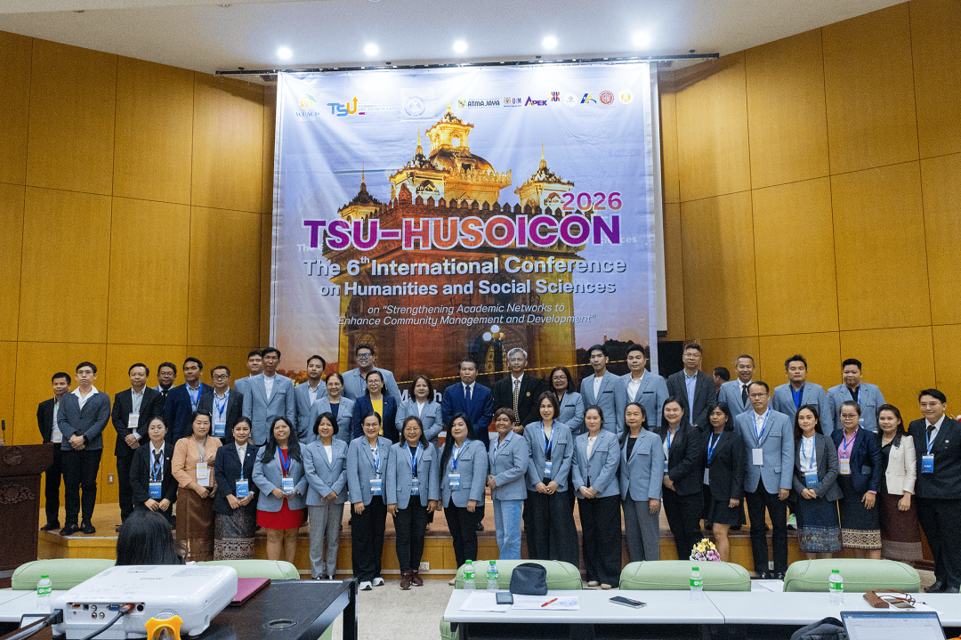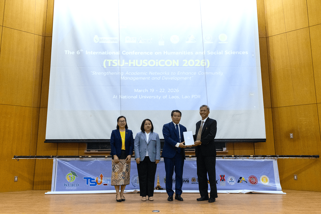 เมื่อวันที่ 19-22 มีนาคม พ.ศ. 2569 ที่ผ่านมา คณะมนุษยศาสตร์และสังคมศาสตร์ มหาวิทยาลัยทักษิณ ร่วมกับ World University Association for Community Development (WUACD) และ Faculty of Economics and Business Management, National University of Laos จัดการประชุมวิชาการระดับนานาชาติด้านมนุษยศาสตร์และสังคมศาสตร์ ครั้งที่ 6 (TSU-HUSOiCON 2026) ภายใต้หัวข้อ "Strengthening Academic Networks to Enhance Community Management and Development" ณ มหาวิทยาลัยแห่งชาติลาว โดยมีวัตถุประสงค์เพื่อเผยแพร่องค์ความรู้ทางด้านวิชาการและการวิจัยด้านมนุษยศาสตร์และสังคมศาสตร์ และสร้างเครือข่ายความร่วมมือทางวิชาการด้านมนุษยศาสตร์และสังคมศาสตร์กับสถาบันการศึกษาหรือหน่วยงานอื่น ๆ ทั้งภายในและภายนอกประเทศ ซึ่งการจัดประชุมดังกล่าวจะเป็นเวทีในการเปิดโอกาสให้อาจารย์ นักวิจัย นักวิชาการ นิสิต/นักศึกษาระดับปริญญาตรีและระดับบัณฑิตศึกษา และผู้สนใจอื่น ๆ ได้แลกเปลี่ยนองค์ความรู้และประสบการณ์ด้านการวิจัยในระดับนานาชาติ เพื่อพัฒนาองค์ความรู้และความเข้มแข็งทางวิชาการด้านมนุษยศาสตร์และสังคมศาสตร์ และขับเคลื่อนมหาวิทยาลัยให้เป็นที่รู้จักและยอมรับในระดับนานาชาติ อันจะมีส่วนช่วยในการพัฒนาสังคมและประเทศ โดยการประชุมวิชาการฯ ในครั้งนี้มีองค์กรร่วมจัด ประกอบด้วย