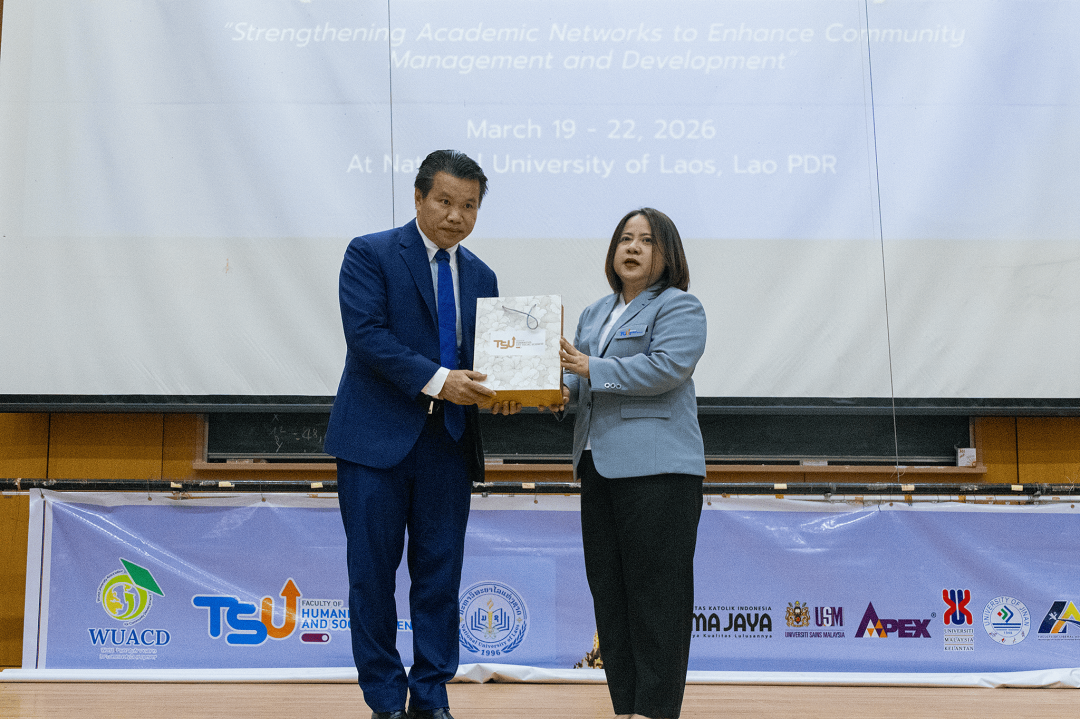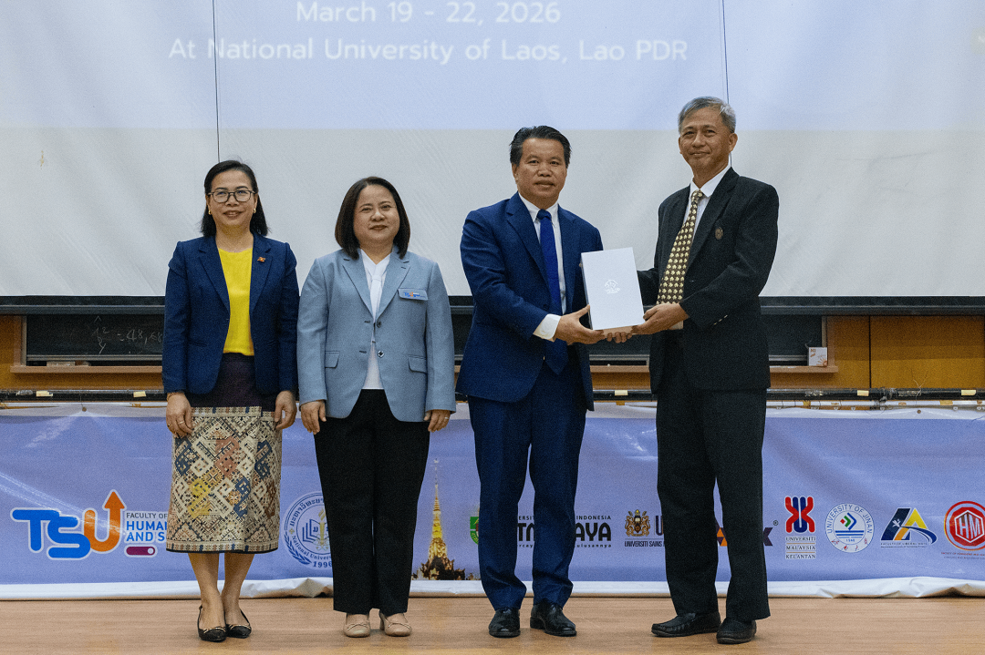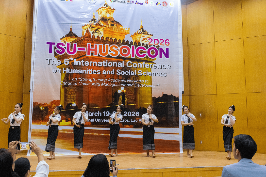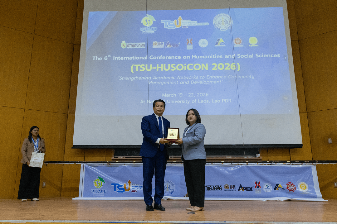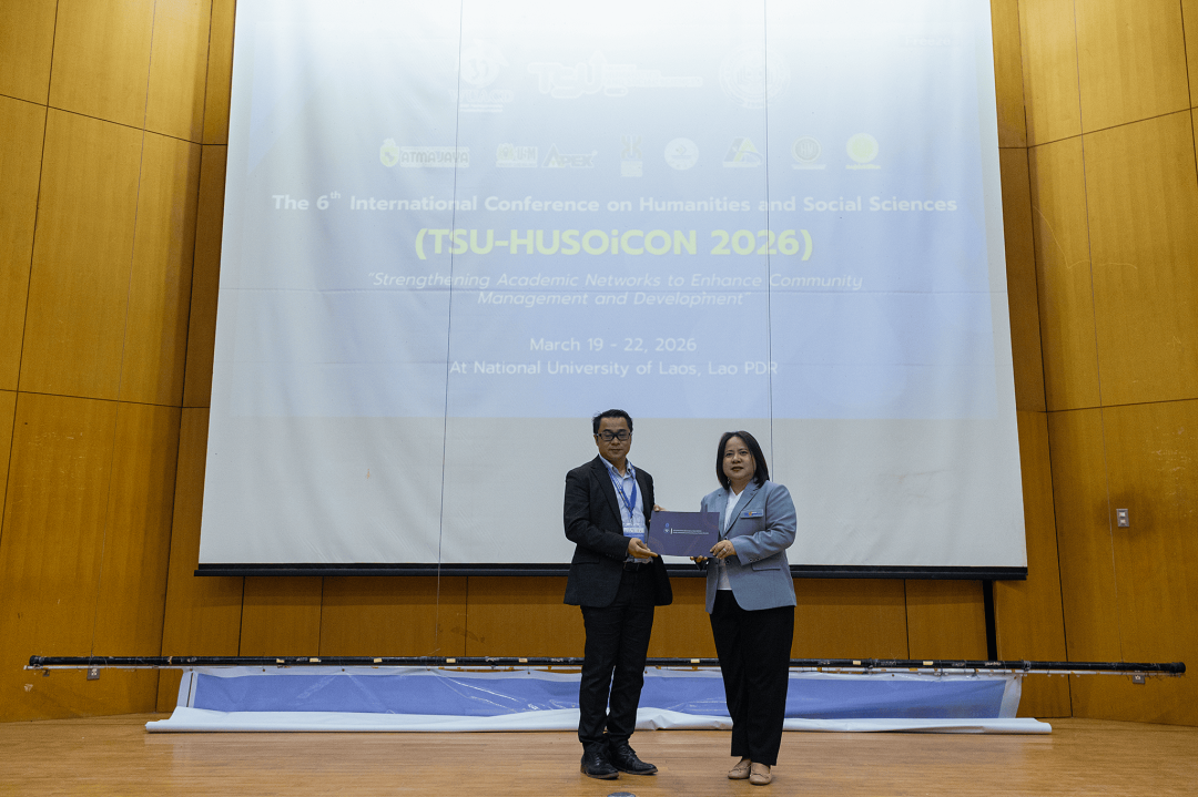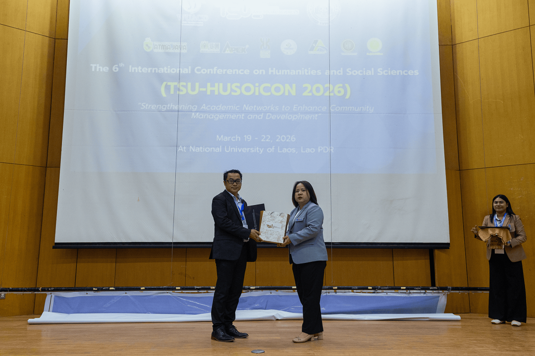 เมื่อวันที่ 19-22 มีนาคม พ.ศ. 2569 ที่ผ่านมา คณะมนุษยศาสตร์และสังคมศาสตร์ มหาวิทยาลัยทักษิณ ร่วมกับ World University Association for Community Development (WUACD) และ Faculty of Economics and Business Management, National University of Laos จัดการประชุมวิชาการระดับนานาชาติด้านมนุษยศาสตร์และสังคมศาสตร์ ครั้งที่ 6 (TSU-HUSOiCON 2026) ภายใต้หัวข้อ "Strengthening Academic Networks to Enhance Community Management and Development" ณ มหาวิทยาลัยแห่งชาติลาว โดยมีวัตถุประสงค์เพื่อเผยแพร่องค์ความรู้ทางด้านวิชาการและการวิจัยด้านมนุษยศาสตร์และสังคมศาสตร์ และสร้างเครือข่ายความร่วมมือทางวิชาการด้านมนุษยศาสตร์และสังคมศาสตร์กับสถาบันการศึกษาหรือหน่วยงานอื่น ๆ ทั้งภายในและภายนอกประเทศ ซึ่งการจัดประชุมดังกล่าวจะเป็นเวทีในการเปิดโอกาสให้อาจารย์ นักวิจัย นักวิชาการ นิสิต/นักศึกษาระดับปริญญาตรีและระดับบัณฑิตศึกษา และผู้สนใจอื่น ๆ ได้แลกเปลี่ยนองค์ความรู้และประสบการณ์ด้านการวิจัยในระดับนานาชาติ เพื่อพัฒนาองค์ความรู้และความเข้มแข็งทางวิชาการด้านมนุษยศาสตร์และสังคมศาสตร์ และขับเคลื่อนมหาวิทยาลัยให้เป็นที่รู้จักและยอมรับในระดับนานาชาติ อันจะมีส่วนช่วยในการพัฒนาสังคมและประเทศ โดยการประชุมวิชาการฯ ในครั้งนี้มีองค์กรร่วมจัด ประกอบด้วย