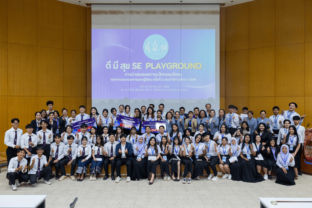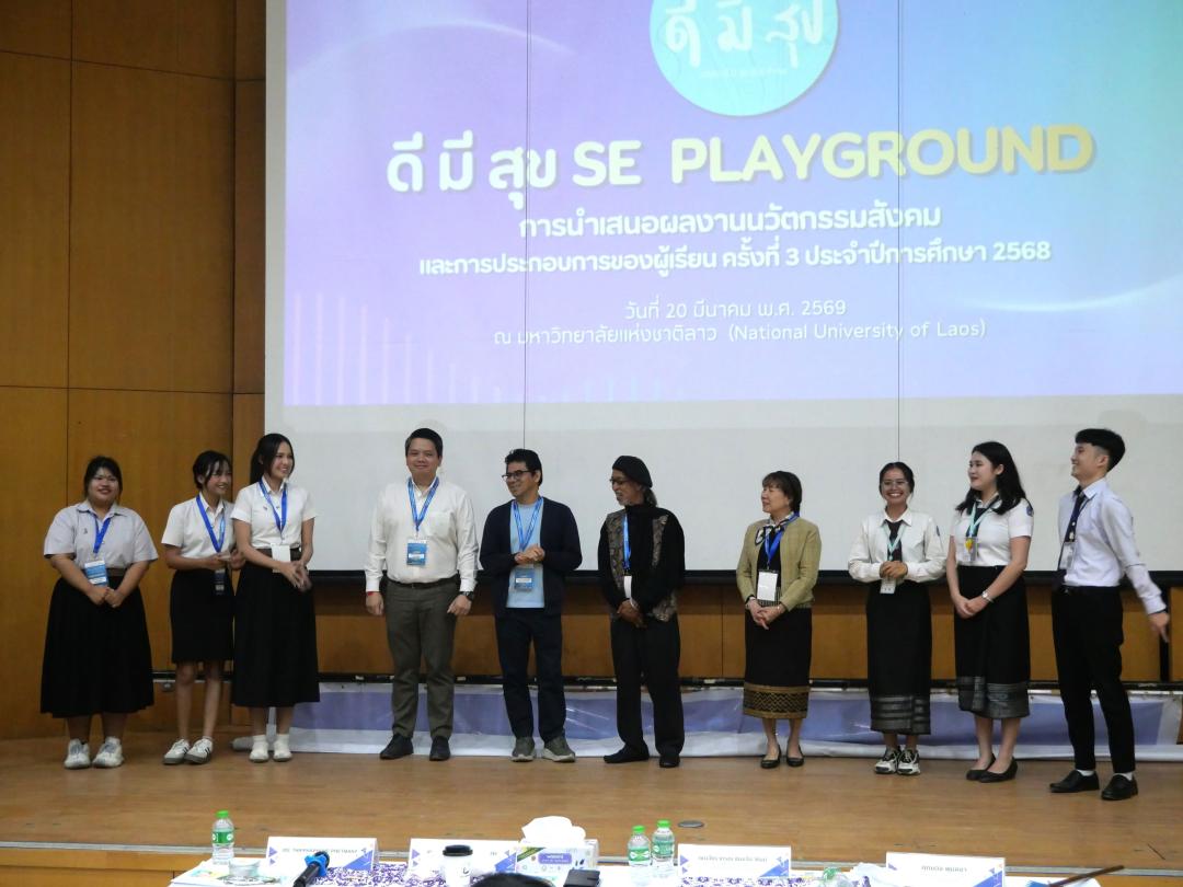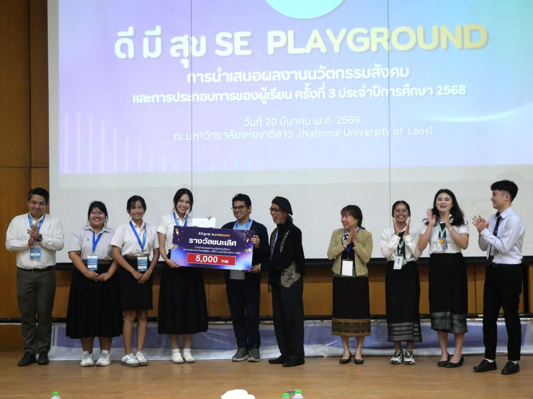 เมื่อวันที่ 20 มีนาคม พ.ศ. 2569 ที่ผ่านมา บริษัท ดี มี สุข (ไม่) จำกัด ร่วมกับ คณะมนุษยศาสตร์และสังคมศาสตร์ มหาวิทยาลัยทักษิณ และ Faculty of Economics and Business Management, National University of Laos จัดการประกวดผลงานนวัตกรรมสังคมและการประกอบการของผู้เรียน รางวัล "ดี มี สุข S E PLAYGROUND" ครั้งที่ 3 ประจำปีการศึกษา 2568 โดยความพิเศษในปีนี้คือการยกระดับสู่สากลด้วยการจัดกิจกรรม ณ มหาวิทยาลัยแห่งชาติลาว สาธารณรัฐประชาธิปไตยประชาชนลาว ซึ่งมีนิสิตจากมหาวิทยาลัยทักษิณ และนักศึกษาจากมหาวิทยาลัยแห่งชาติลาวเข้าร่วมนำเสนอผลงานรวมทั้งสิ้น 18 ทีม