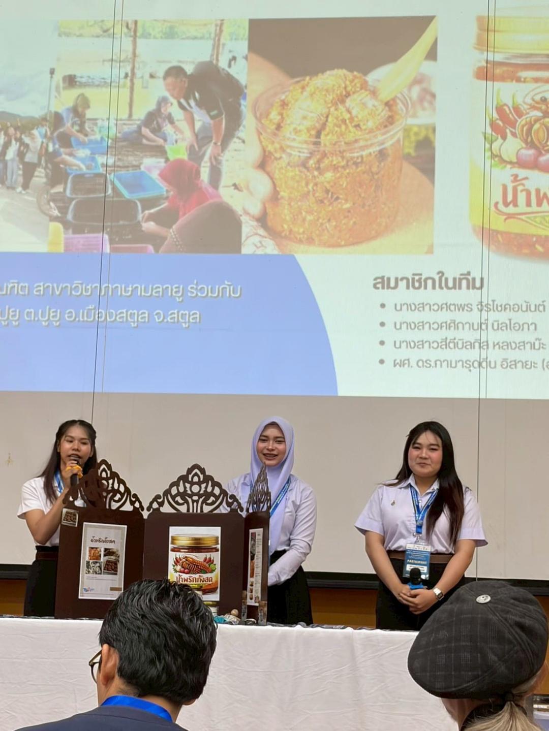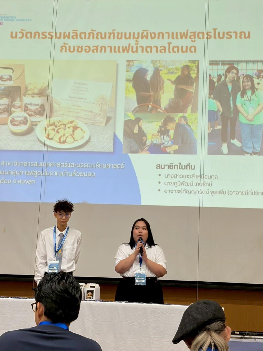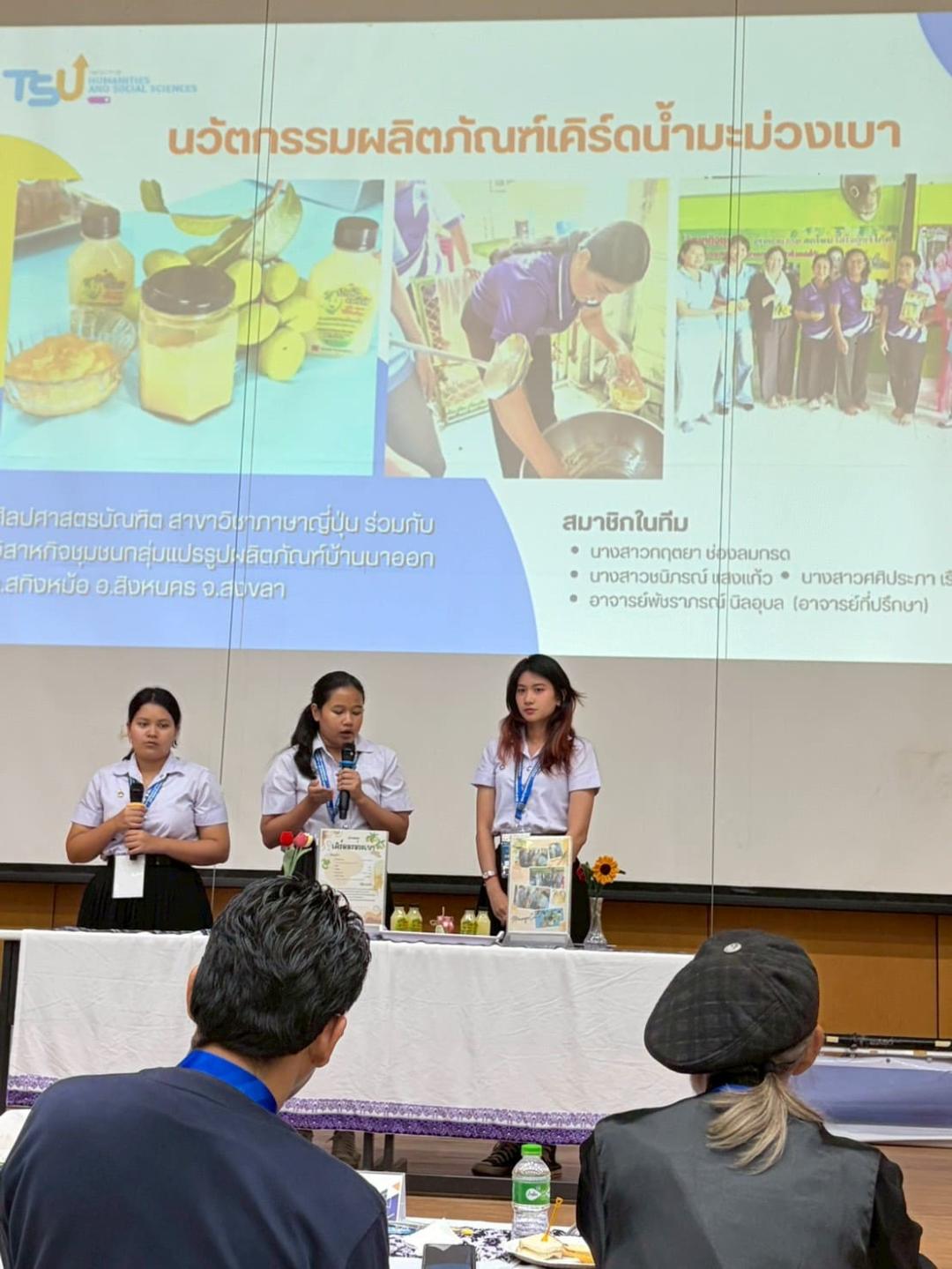 สำหรับรางวัลชนะเลิศในการประกวดครั้งที่ 3 นี้ ตกเป็นของนิสิตทีมจากหลักสูตรศิลปศาสตรบัณฑิต สาขาวิชาภาษาจีน ซึ่งได้นำเสนอผลงาน "นวัตกรรมผลิตภัณฑ์สบู่ล้างแปรงแต่งหน้าจากน้ำผึ้งชันโรง" โดยความร่วมมือกับกลุ่มวิสาหกิจชุมชนสมุนไพรคุณธรรมวัดคูเต่า อ.บางกล่ำ จ.สงขลา รางวัลรองชนะเลิศอันดับ 1 ตกเป็นของทีมนักศึกษาจากมหาวิทยาลัยแห่งชาติลาว กับผลงานนวัตกรรม "Bitter melon tea" และรางวัลรองชนะเลิศอันดับ 2 มีจำนวน 3 ทีม ประกอบด้วย ทีมนิสิตจากหลักสูตรศิลปศาสตรบัณฑิต สาขาวิชาภาษาอังกฤษ กับผลงานนวัตกรรม "ผลิตภัณฑ์พวงกุญแจห้อยกระเป๋าลูกปัดโนราประยุกต์" ทีมนิสิตจากหลักสูตรศิลปศาสตรบัณฑิต สาขาวิชาภาษาญี่ปุ่น ผลงานนวัตกรรม "ผลิตภัณฑ์เคิร์ดน้ำมะม่วงเบา" และทีมนิสิตหลักสูตรศิลปศาสตรบัณฑิต สาขาวิชาสารสนเทศศาสตร์และบรรณารักษศาสตร์ ผลงานนวัตกรรม "ผลิตภัณฑ์ขนมผิงกาแฟสูตรโบราณกับซอสกาแฟน้ำตาลโตนด"